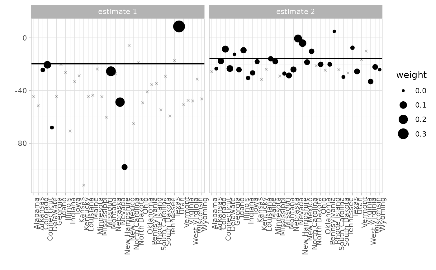 synthdid_units_plot(list(tau.sc, tau.hat))